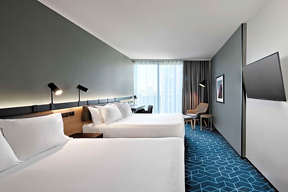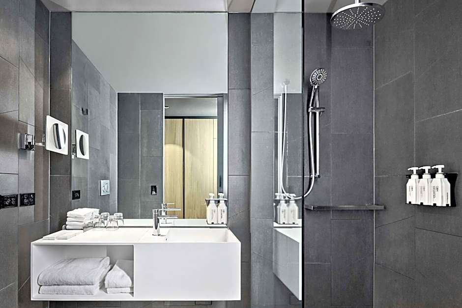 The quadruple room features air conditioning, a tea and coffee maker, as well as a private bathroom boasting a walk-in shower and a hairdryer. The quadruple room has carpeted floors, a seating area with a flat-screen TV, a wardrobe, a safe deposit box as well as city views. The unit has 2 beds.